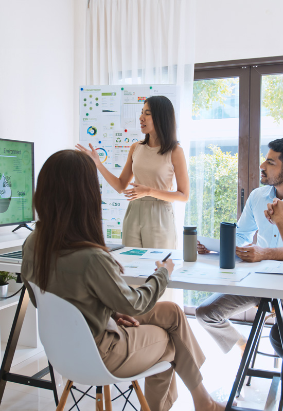 Opracowujemy kompleksowe strategie ESG, które integrują aspekty środowiskowe, społeczne i zarządcze, wspierając długoterminowy rozwój i pozytywny wpływ Twojej firmy na otoczenie.